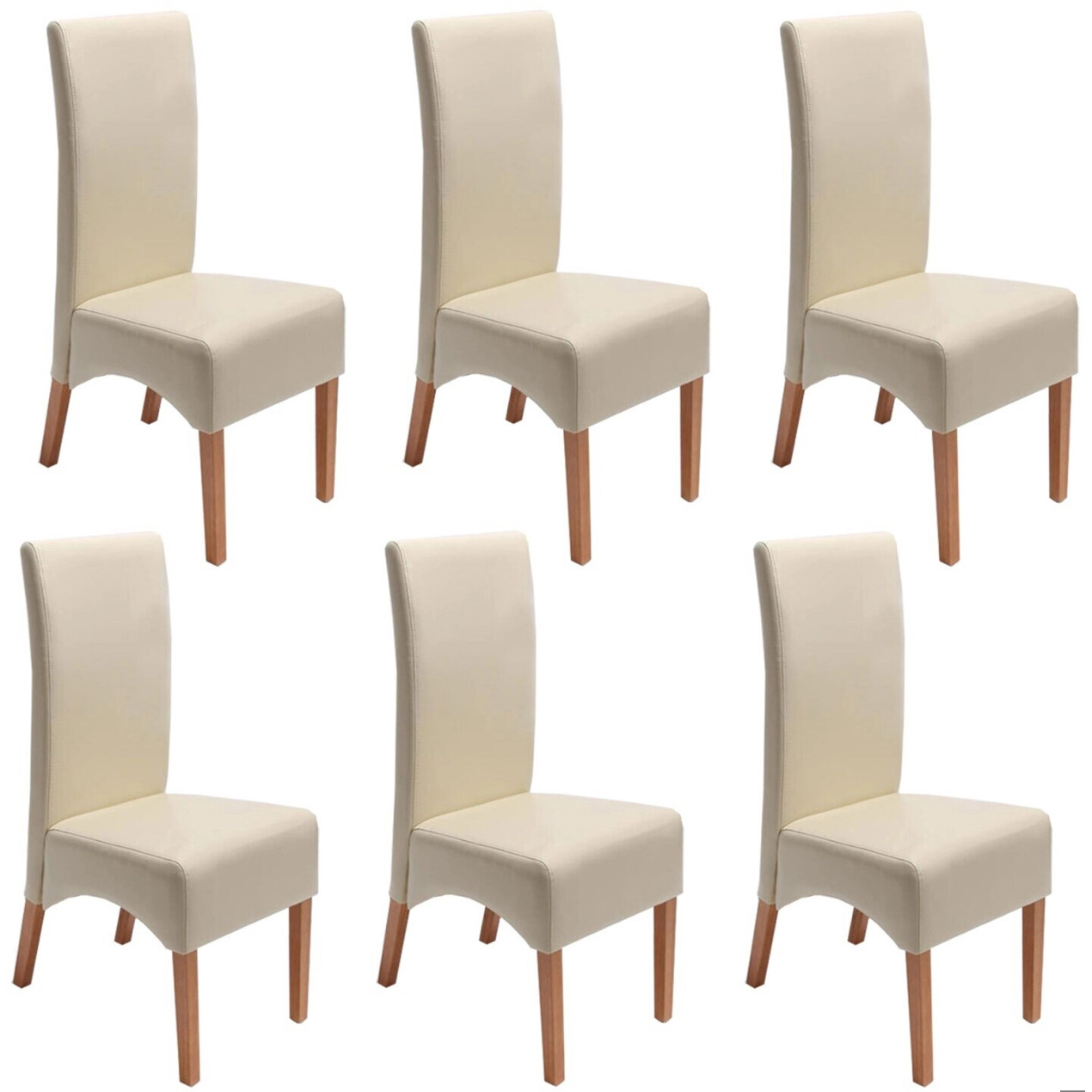 6er-Set Esszimmerstühle Crotone - Leder Creme mit hellen Beinen