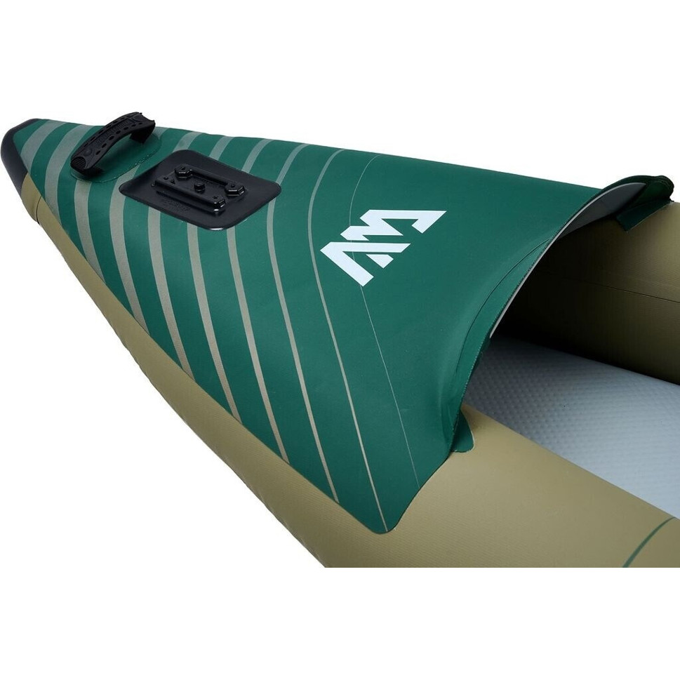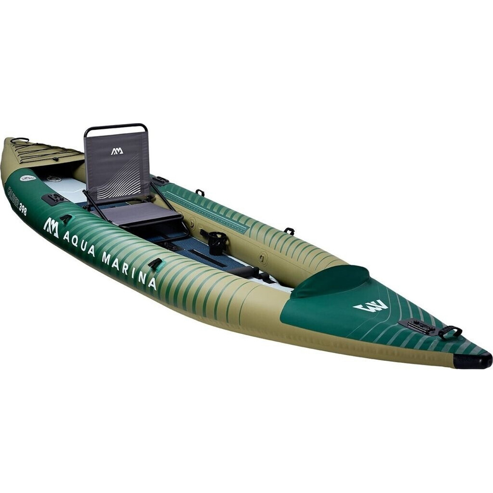 Entdecken Sie das Aqua Marina Caliber Angling Kajak, ein aufblasbares Kajak, das speziell für Angler entwickelt wurde. Hergestellt aus robustem Kunststoff, überzeugt es durch seine grüne Farbe und sein ansprechendes Design.