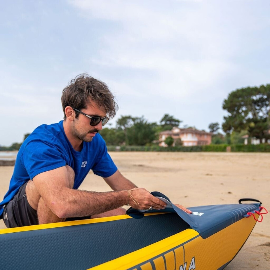 Dank einer maximalen Zuladung von 128 kg bietet das Kajak ausreichend Platz für all Ihre Ausrüstung, während es gleichzeitig stabil und leicht zu steuern bleibt. Egal, ob Sie entspannte Touren auf ruhigen Gewässern oder aufregende Paddelabenteuer planen, das Aqua Marina Tomahawk AIR-K 375 passt sich Ihren Bedürfnissen an und sorgt für ein unvergleichliches Erlebnis.