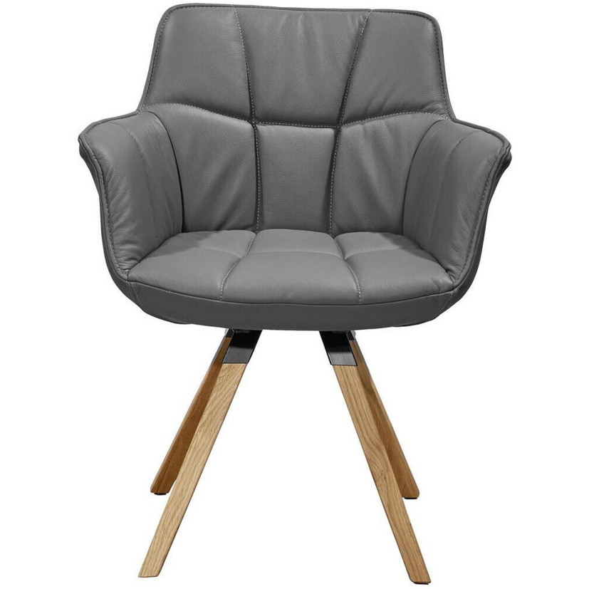 Armlehnstuhl Musterring Dunkelgrau aus Rindleder - Massivholz Wildeiche (67x85x60 cm)