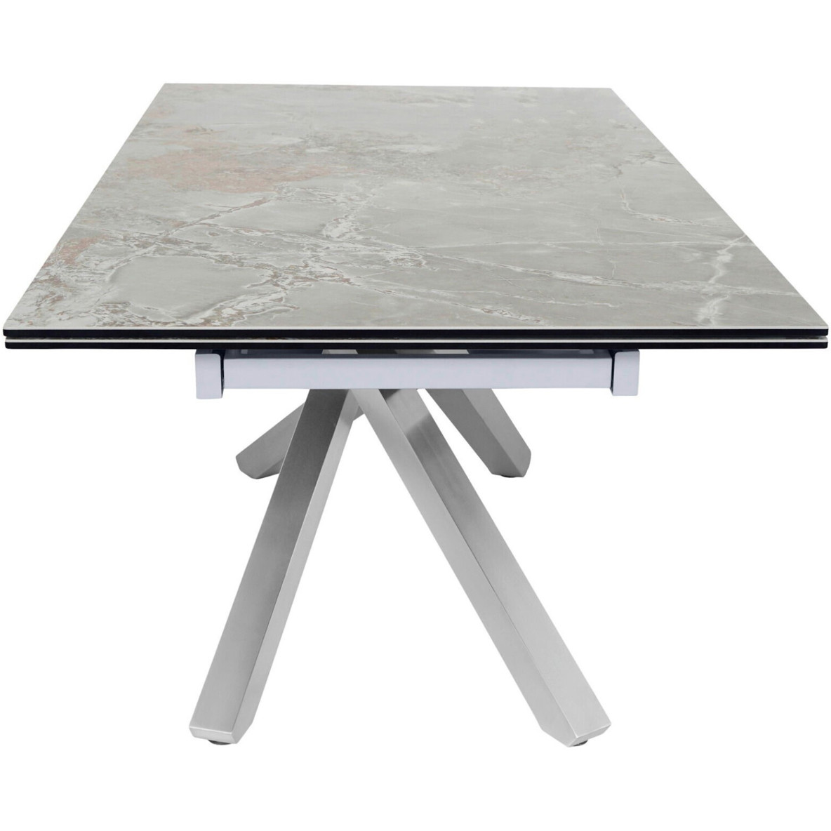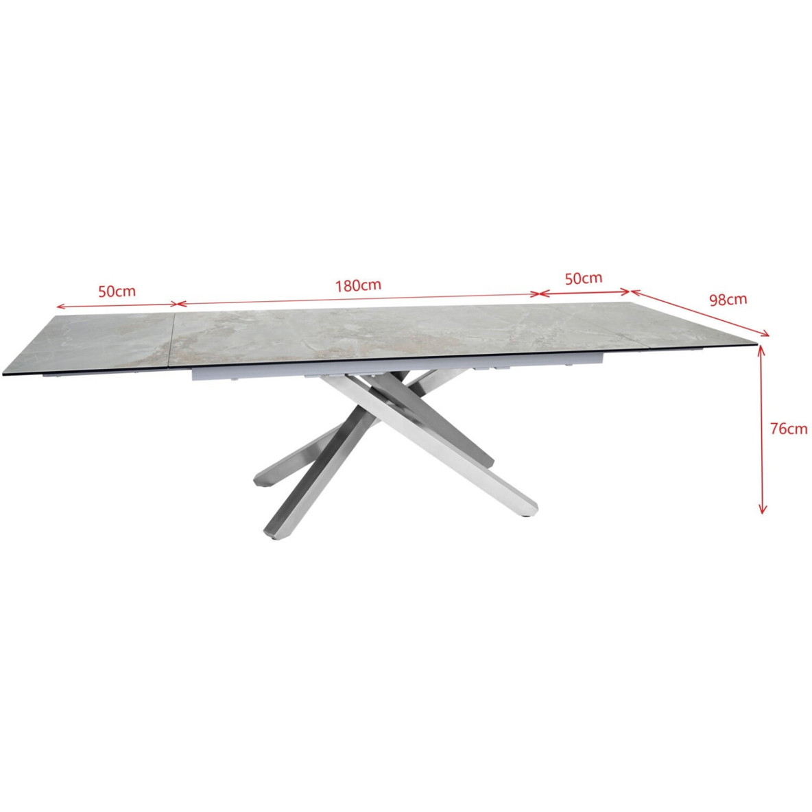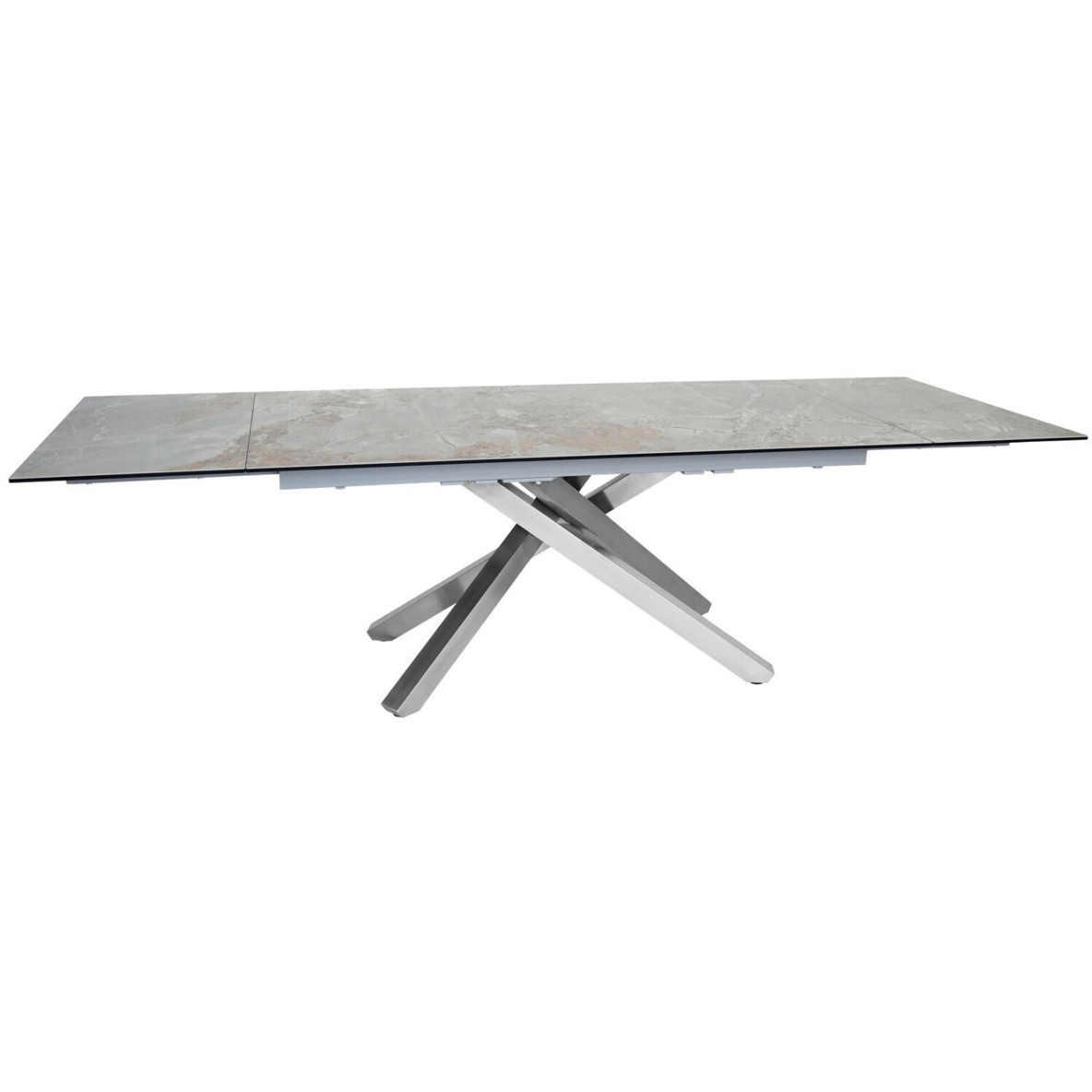 Produktinformationen "Ausziehbarer Esstisch aus Edelstahl und Glas - Rechteckig, Hellgrau/Hellbraun, 98x76x180-280 cm"