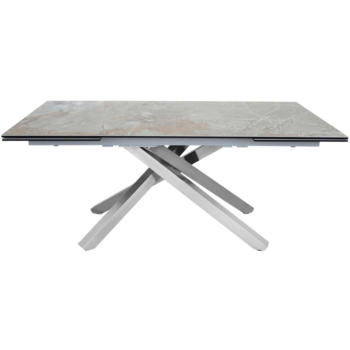 Ausziehbarer Esstisch aus Edelstahl und Glas - Rechteckig, Hellgrau/Hellbraun, 98x76x180-280 cm