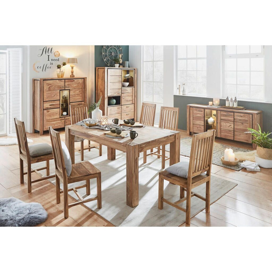Entdecken Sie den stilvollen Landscape Esstisch aus massivem Sheeshamholz, der perfekt für Ihre Wohnküche oder Ihr Esszimmer geeignet ist. Mit einer Höhe von 77 cm, einer Breite von 160 cm und einer Tiefe von 100 cm bietet dieser rechteckige Esstisch ausreichend Platz für Familie und Freunde.