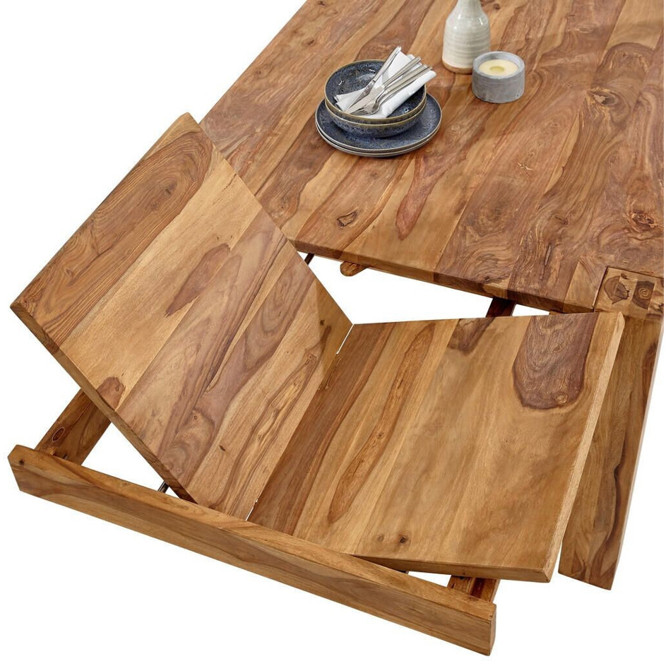 Ausziehbarer Esstisch aus Sheesham Massivholz - Rechteckig 100x77x160-260 cm