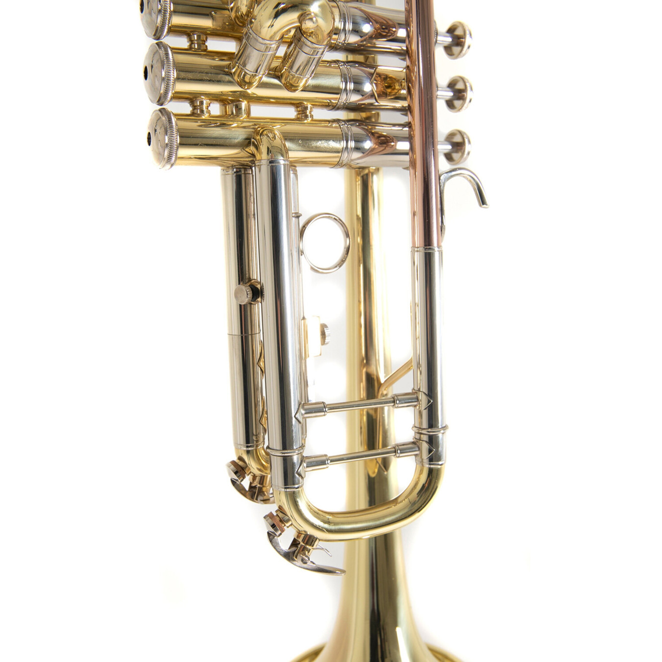 Hergestellt aus hochwertigem Messing mit einer klarlackierten Oberfläche, besticht diese Trompete nicht nur durch ihr elegantes Aussehen, sondern sorgt auch für eine langlebige Nutzung. Die Verwendung von Goldmessing im Mundrohr und Edelstahl für die Ventile gewährleistet eine hohe Stabilität und hervorragende Spielbarkeit.