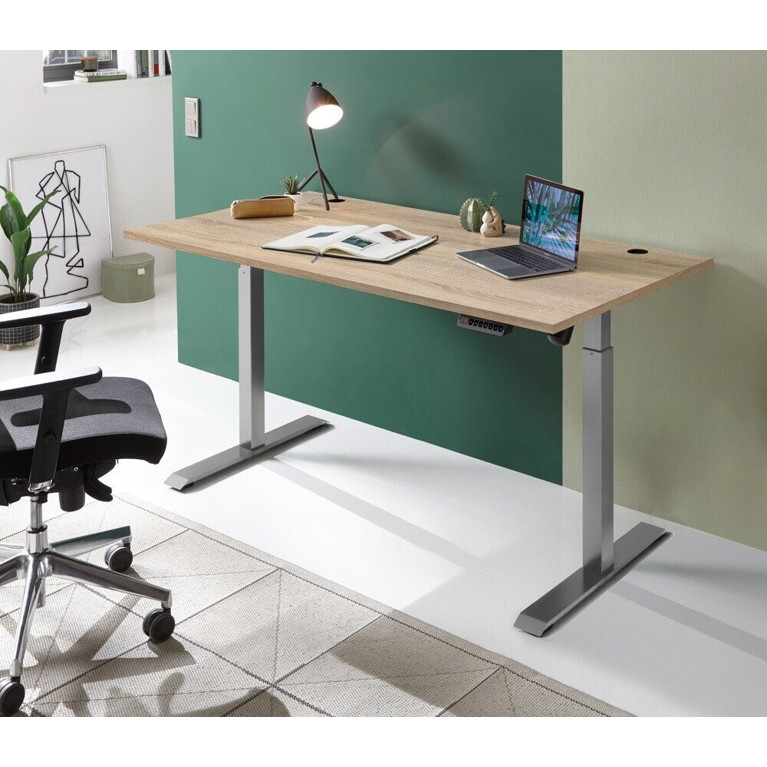 Dank des stabilen Metallgestells mit einem robusten T-Fuß-Gestell steht dieser Schreibtisch sicher und stabil, egal in welcher Höhenverstellung Sie ihn nutzen. Mit einer Höhe von 72 cm, die bis auf 120 cm elektrisch höhenverstellbar ist, können Sie die optimale Ergonomie für Ihr Arbeitsumfeld wählen und so maximalen Komfort erreichen.