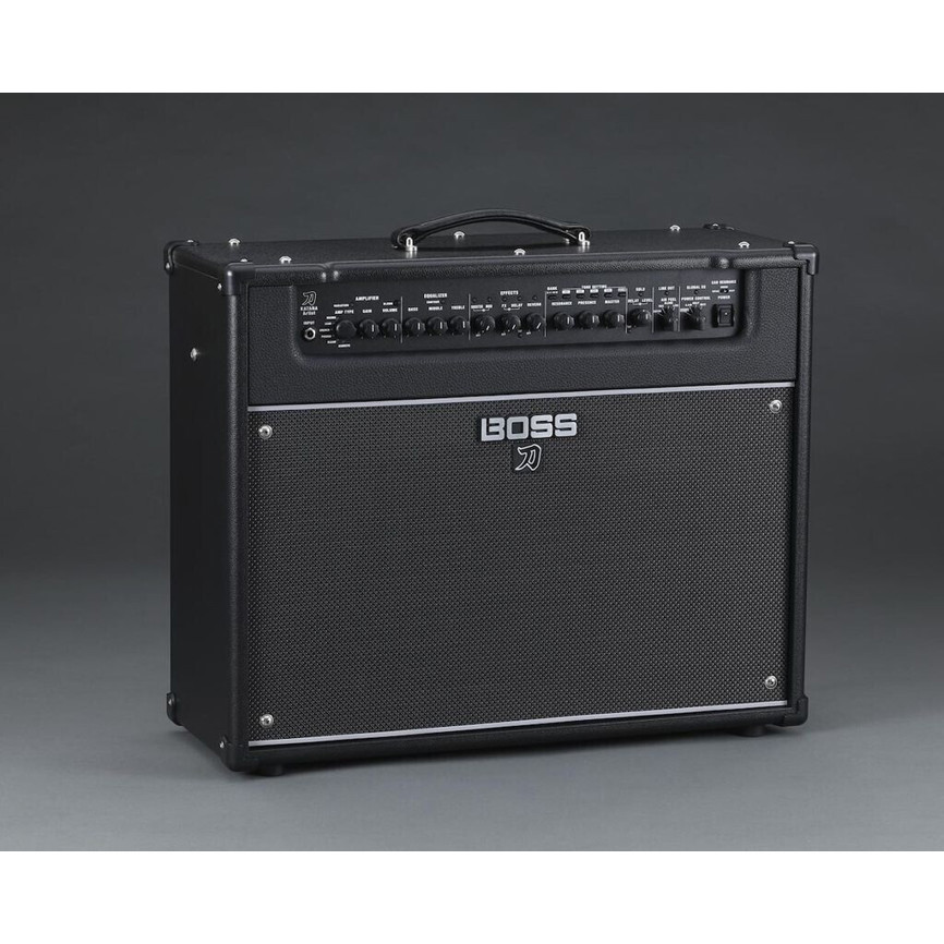 Als Teil der renommierten Boss Katana-Serie kombiniert dieser Modeling-Combo herausragende Klangeigenschaften mit modernster Technologie. Die tollen Abmessungen von 63 x 24,8 x 51,5 cm machen ihn zu einer idealen Wahl für Studio und Bühne alike.