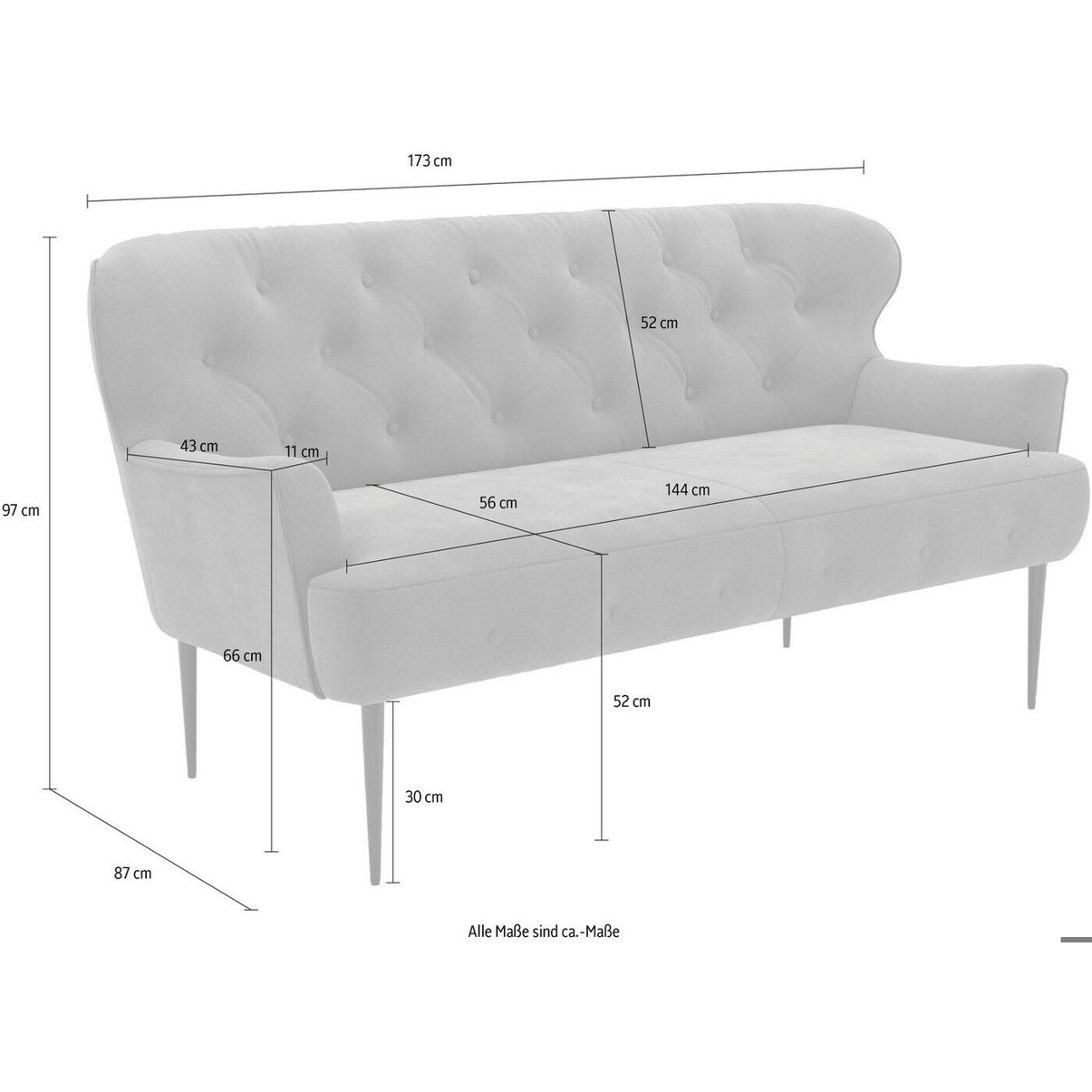 Entdecken Sie das elegante Cavadore 2,5-Sitzer Küchensofa Amba, das Ihre Küche in einen Ort der Gemütlichkeit und des Stils verwandelt. Mit einer großzügigen Breite von 173 cm, einer Höhe von 97 cm und einer Tiefe von 87 cm bietet dieses Möbelstück ausreichend Platz zum Entspannen und Genießen.