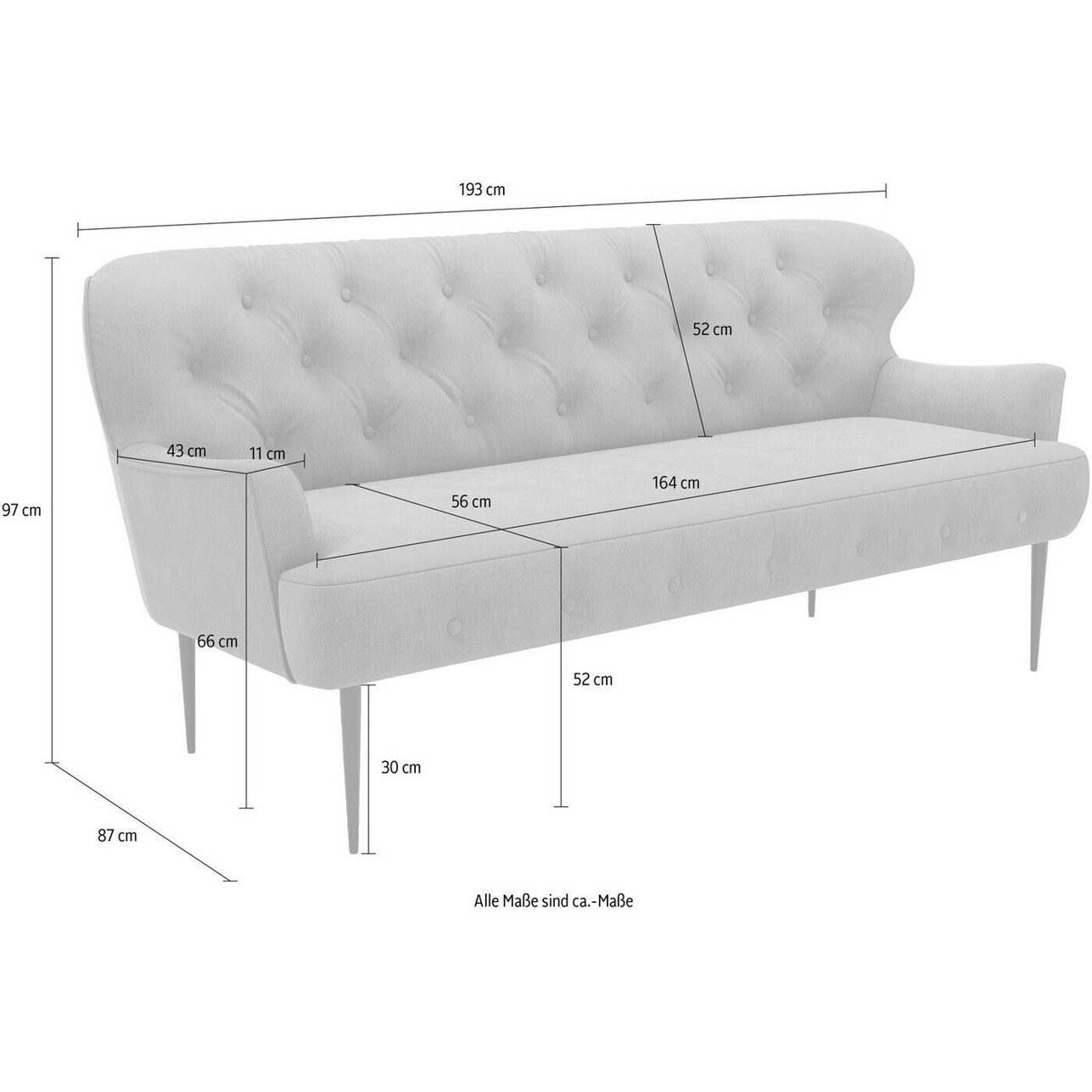 Erleben Sie einen Hauch von Eleganz und Komfort mit unserem Cavadore 3-Sitzer Küchensofa Amba. Mit großzügigen Abmessungen von 193x97x87 cm bietet dieses stilvolle Sofa genügend Platz für Familie und Freunde. Die Sitzfläche ist aus hochwertigem Polyester gefertigt, das nicht nur für ein angenehmes Sitzgefühl sorgt, sondern auch leicht zu reinigen ist.