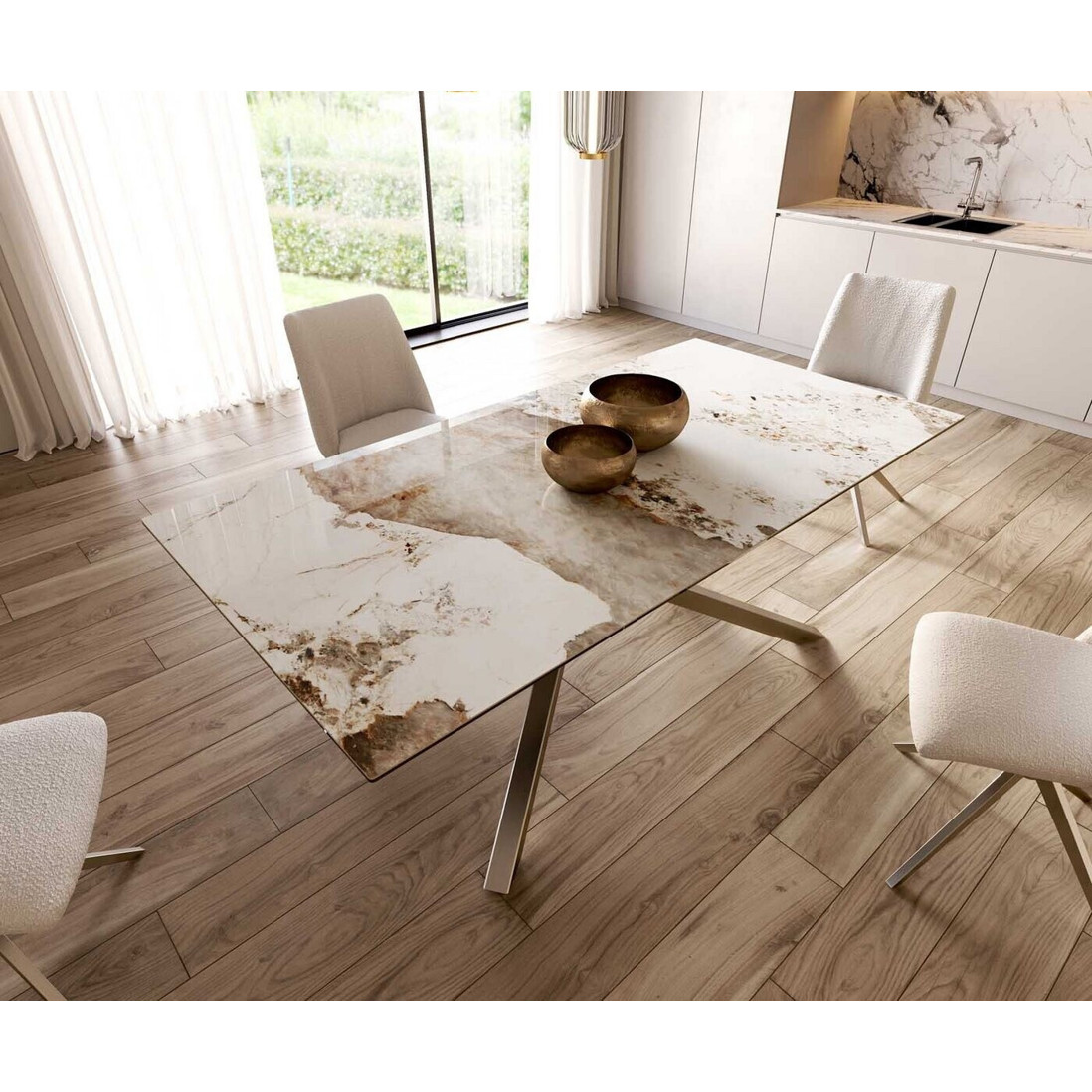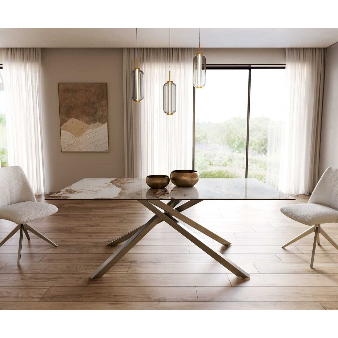 DeLife Esstisch Edge 200x100 cm – Keramik Minas Melange in Weiß-Beige (37862)