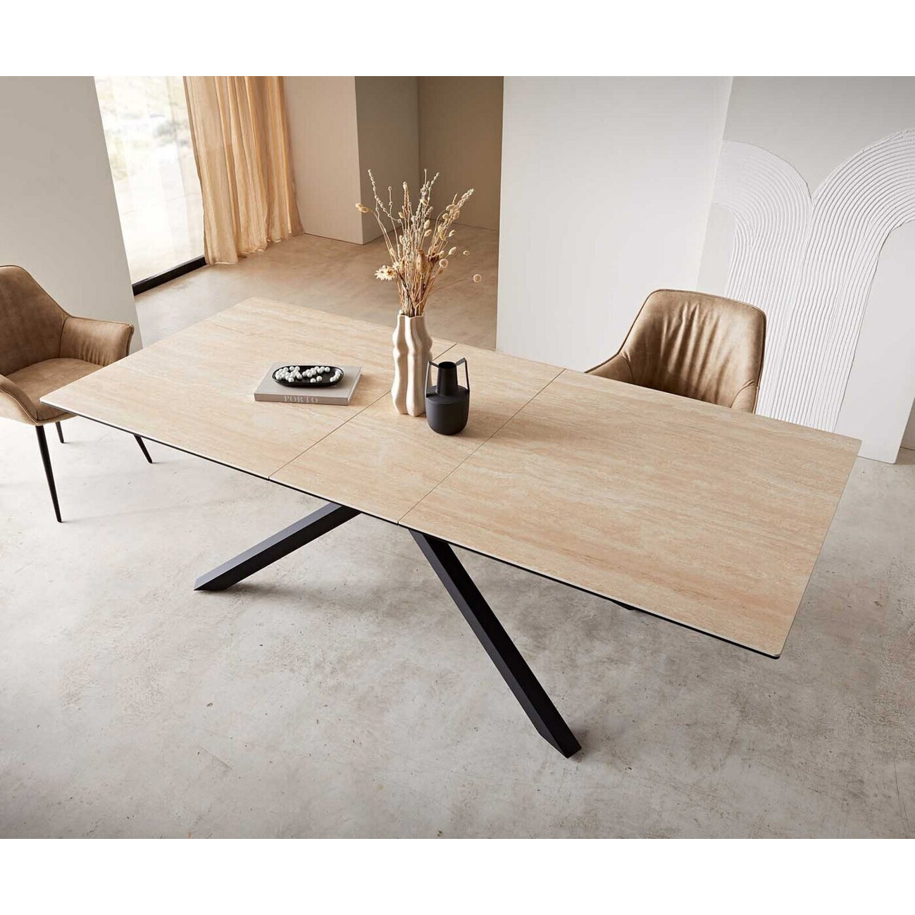 DeLife Esstisch Edge - Ausziehbar 180-220x100 cm - Keramik Travertin in Natur Schwarz