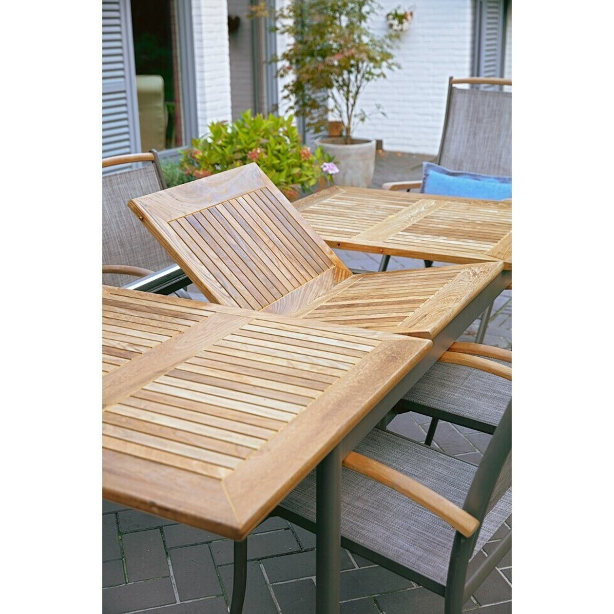 Die rechteckige Tischform bietet Platz für gesellige Runden mit Familie und Freunden. Dank der FSC-zertifizierten Materialien können Sie sicher sein, dass der Tisch aus nachhaltig bewirtschafteten Wäldern stammt. Die Tischplatte hat eine Stärke von 25 mm und besteht aus robustem Teak-Holz in einem eleganten Beige, das jedem Außenbereich eine warme Note verleiht.