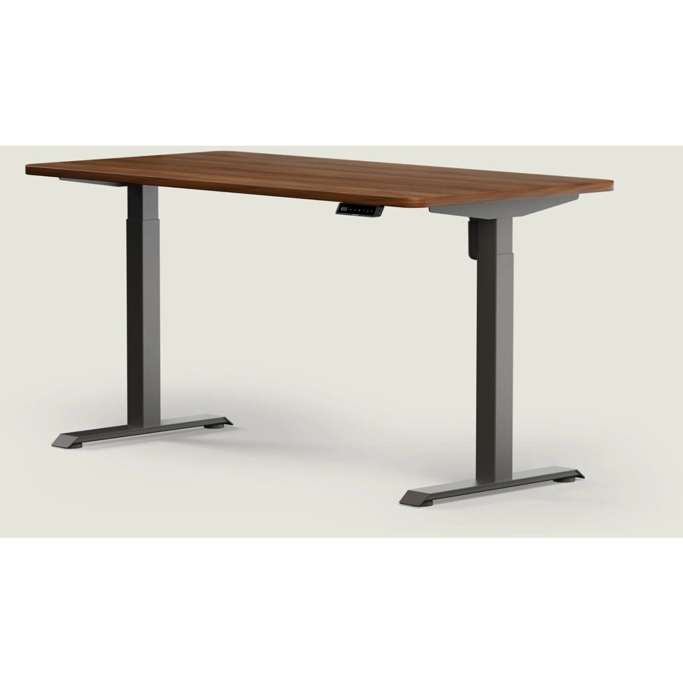 Entdecken Sie den Desktronic Home One 160x80cm in edlem Nussbaum mit schwarzem Gestell, der perfekte höhenverstellbare Schreibtisch für Ihr Zuhause oder Büro. Der stabile Rahmen aus hochwertigem Stahl sorgt für Langlebigkeit und Stabilität.