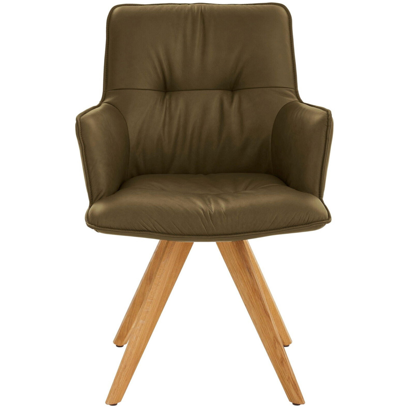Produktinformationen "Dieter Knoll Armlehnstuhl - Olivgrün aus Rindleder, Wildeiche massiv - 59x89x63 cm (1475021256)"