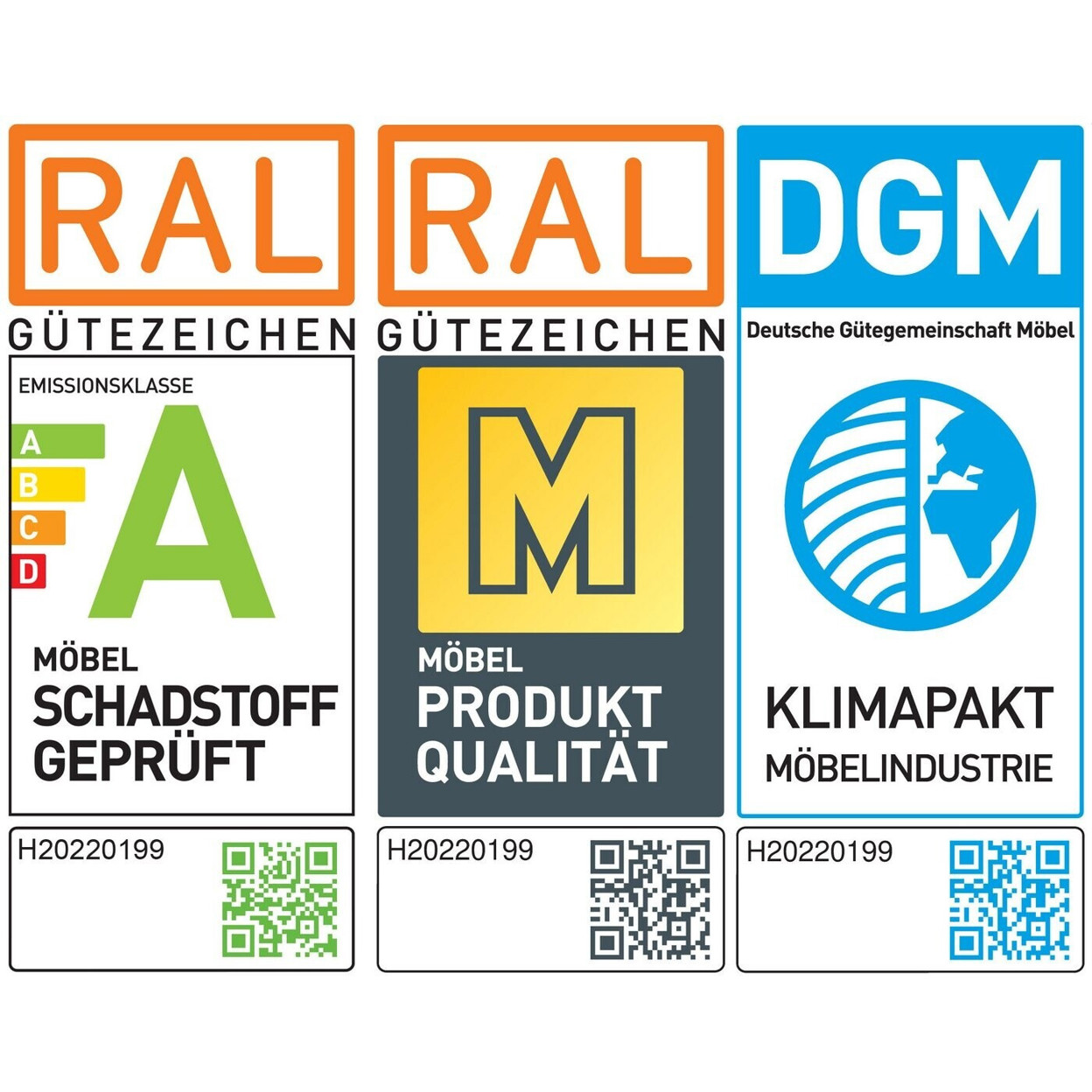 Mit einer großzügigen Breite von 255 cm und einer Tiefe von 210 cm bietet die Eckbank ausreichend Platz für Familie und Freunde. Die Höhe von 98 cm sorgt dafür, dass Sie komfortabel am Tisch sitzen können.