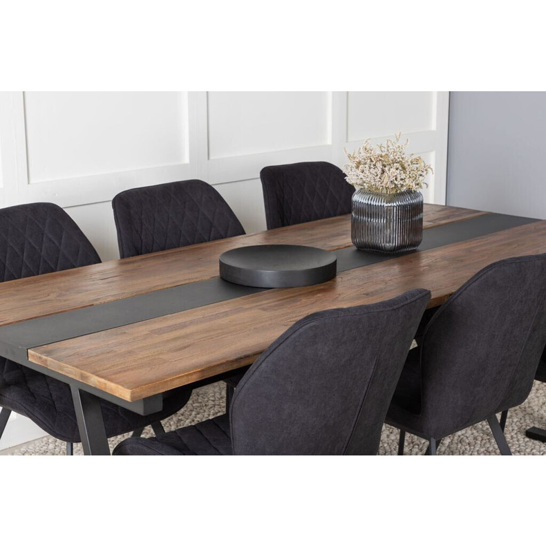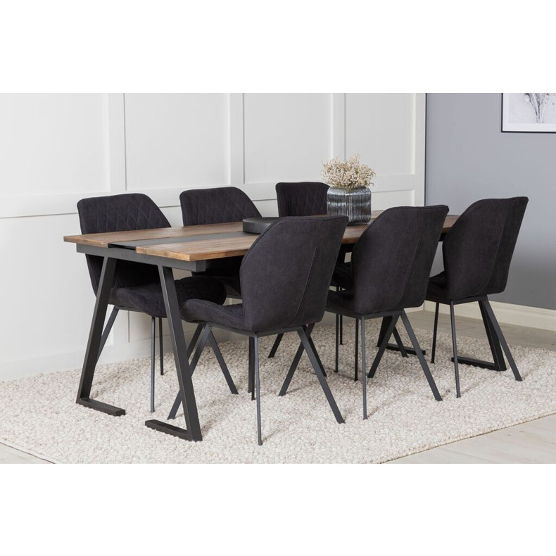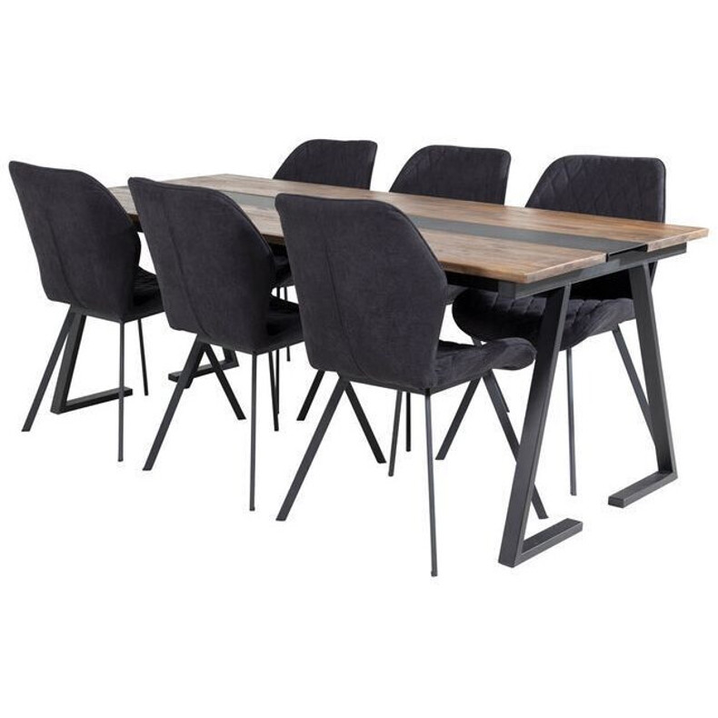 Dieses 7-teilige Set besteht aus einem großzügigen Esstisch, der genügend Platz für bis zu 6 Personen bietet, und 6 komfortablen Gemma Stühlen, die in schickem Schwarz daherkommen. Egal, ob für festliche Anlässe oder gemütliche Abendessen mit Freunden und Familie – dieses Set bietet Ihnen die Flexibilität und den Stil, den Sie suchen.