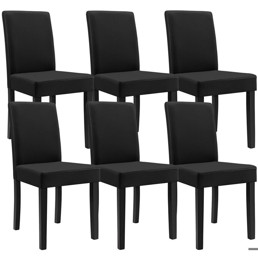 Die schwarz gepolsterten Stühle aus Kunstleder ergänzen den Tisch nicht nur optisch, sondern bieten auch ultimativen Komfort beim Essen. Durch die Verbindung von robustem MDF-Material und pflegeleichtem Kunstleder ist diese Essgruppe sowohl langlebig als auch einfach zu reinigen.