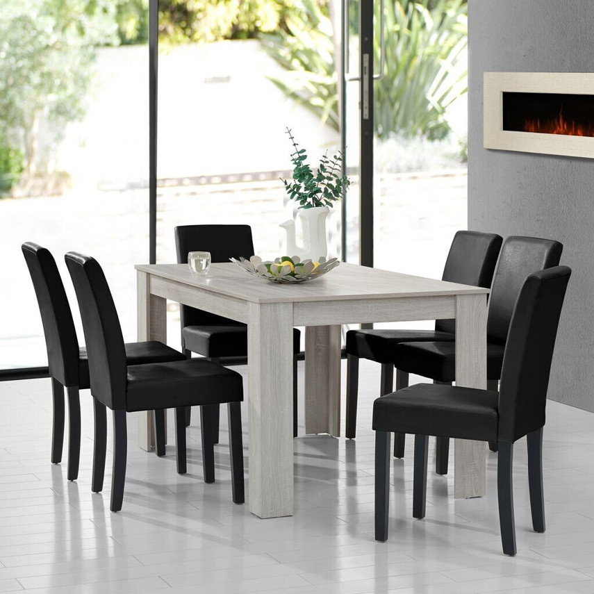 Produktinformationen "Esstischgruppe en.casa: Weißer Eiche Esstisch mit 6 Schwarze Kunstleder Stühlen - 140x90 cm"