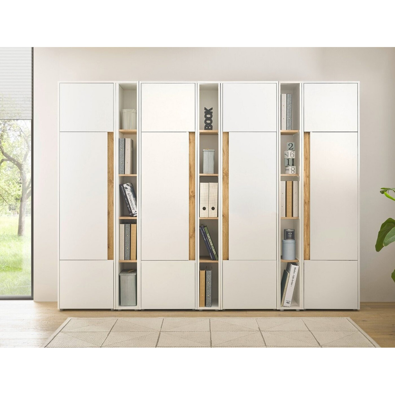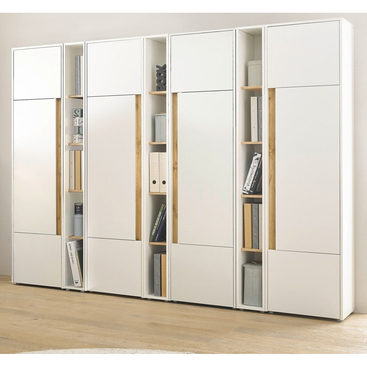 Furn.Design Aktenschrank Set - 4 x Stauraumschrank & 3 x Regal in Weiß/Wotan Eiche (GE6269-25)