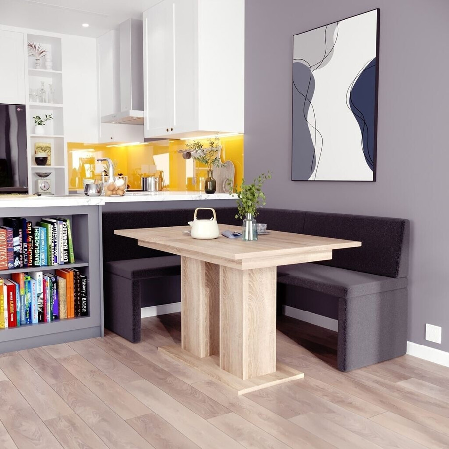 Entdecken Sie die Furnistar Eckbank Akiko mit Tisch, eine perfekte Ergänzung für Ihr modernes Esszimmer. In elegantem schwarz gehalten, vereint dieses Möbelstück Stil und Funktionalität.