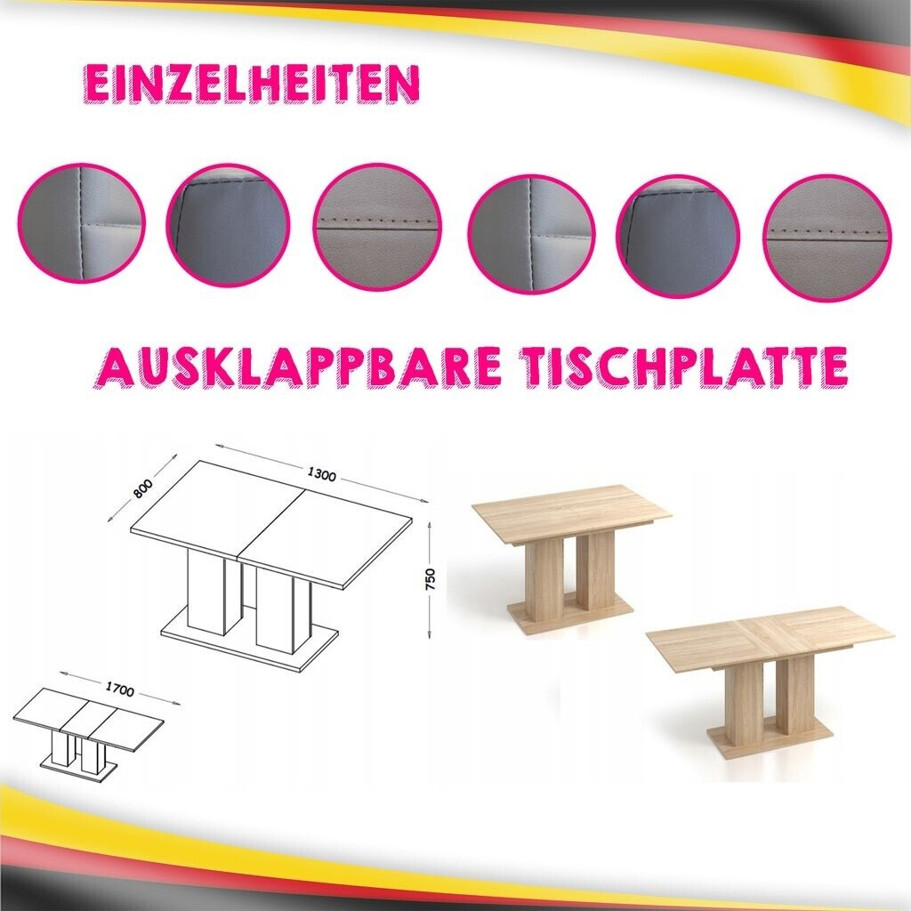 | Abmessungen Tisch (HxBxT): | 75 x 170 x 54 cm |