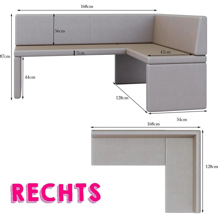 Gefertigt aus hochwertigem Kunstleder und einem Gestell aus Holz, ist die Eckbank nicht nur stilvoll, sondern auch robust und pflegeleicht. Verleihen Sie Ihrem Raum mit dieser modernen Eckbank einen Hauch von Luxus!