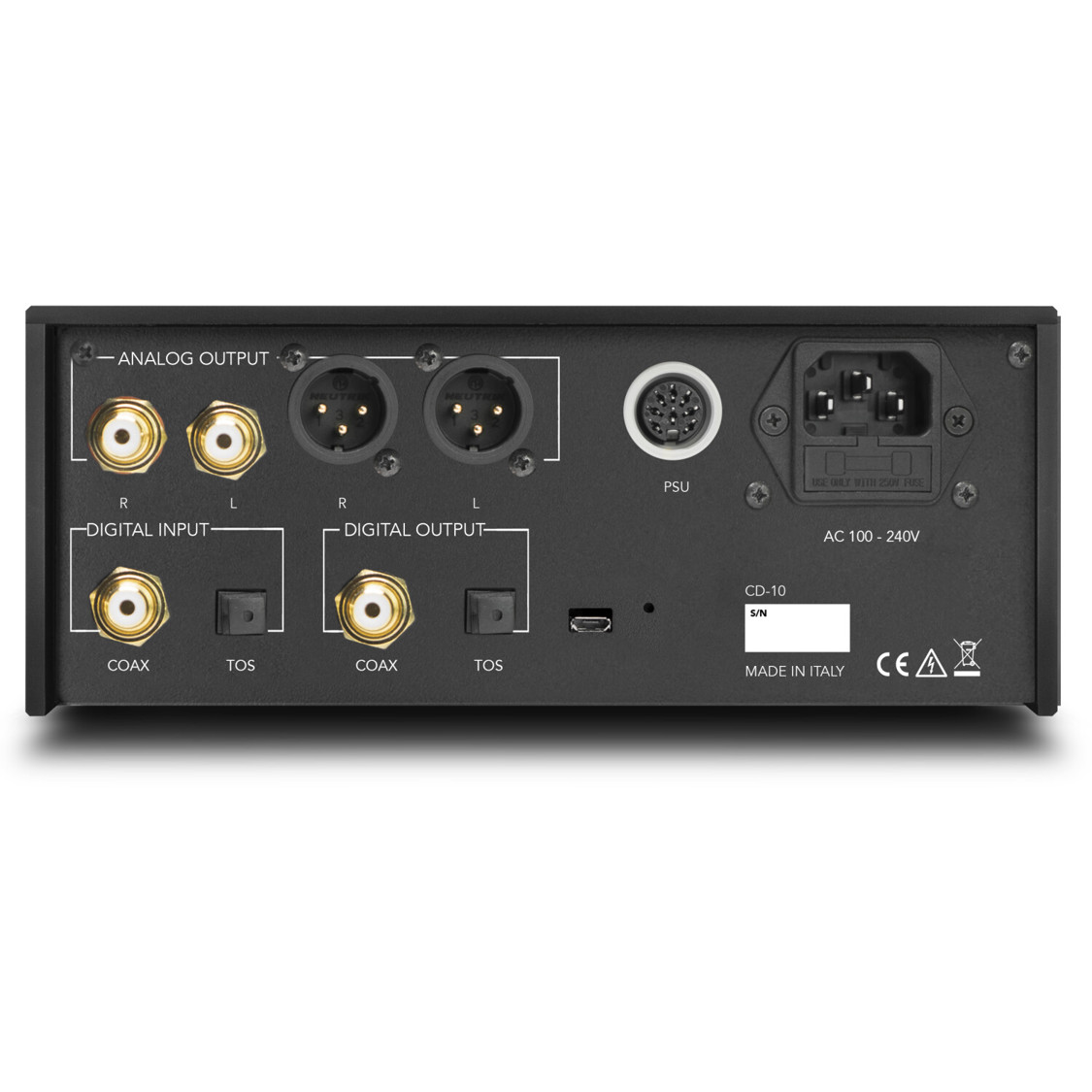 Dank der umfangreichen digitalen Ausgänge, die sowohl optische (TOSLINK) als auch koaxiale (SPDIF) Anschlüsse umfassen, ist der CD-10 äußerst vielseitig und lässt sich problemlos in Ihr bestehendes Setup integrieren. Darüber hinaus bietet er analoge Ausgänge über XLR und Line-Out (Cinch/RCA) für noch mehr Flexibilität.