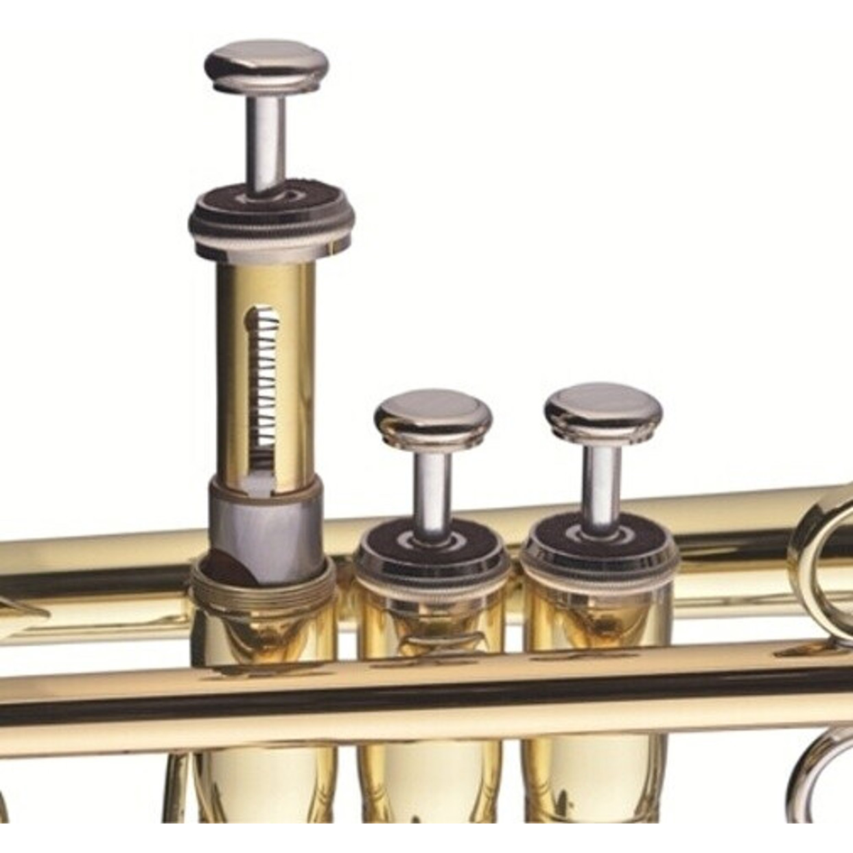 Das Mundrohr und der Stimmbogen sind ebenfalls aus Goldmessing gefertigt, während die Ventile aus Edelstahl höchste Präzision und Zuverlässigkeit garantieren. Die Ausstattung umfasst einen Daumensattel am ersten Zug, einen Ring am dritten Zug und Fingerauflagen in edler Permuttoptik, die den Komfort beim Spielen erhöhen.