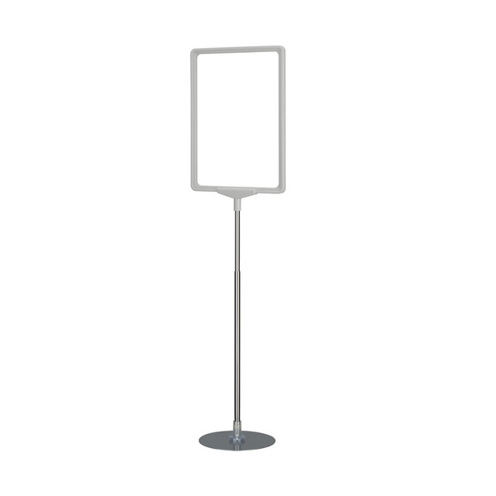 Die stabil verarbeitete Fußplatte aus pulverbeschichtetem Metall verleiht dem Aufsteller eine hohe Standfestigkeit, während die transparente Halterung die beworbenen Inhalte optimal zur Geltung bringt. Dieser Plakatständer bietet Platz für DIN A5 große Plakate und lässt sich in der Höhe von 320 mm bis zu 620 mm verstellen, was ihn besonders flexibel einsetzbar macht.