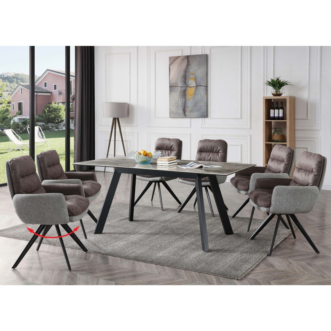 Mendler 6er-Set Drehbare Esszimmerstühle MCW-G66 | Küchenstuhl mit Armlehne | Stoff/Textil in Hellgrau-Grau