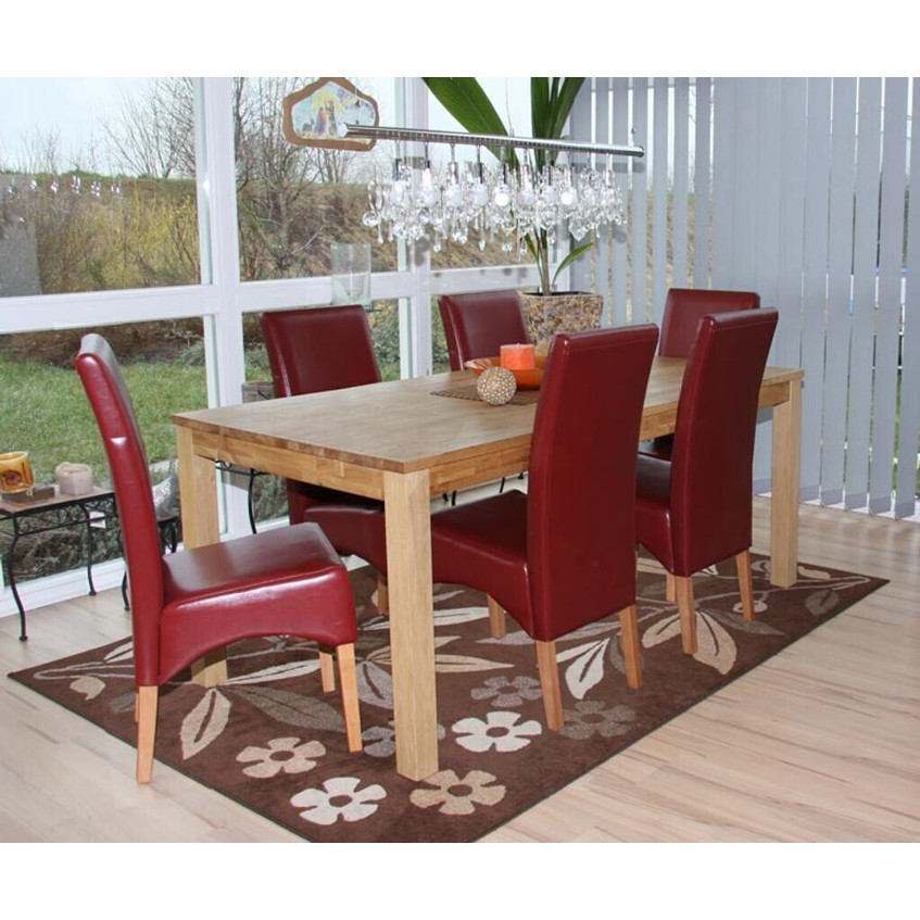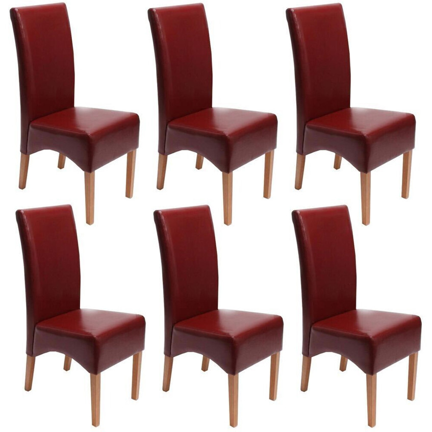 Produktinformationen "Mendler 6er-Set Esszimmerstühle Crotone – rote Lederbezüge mit hellen Beinen"