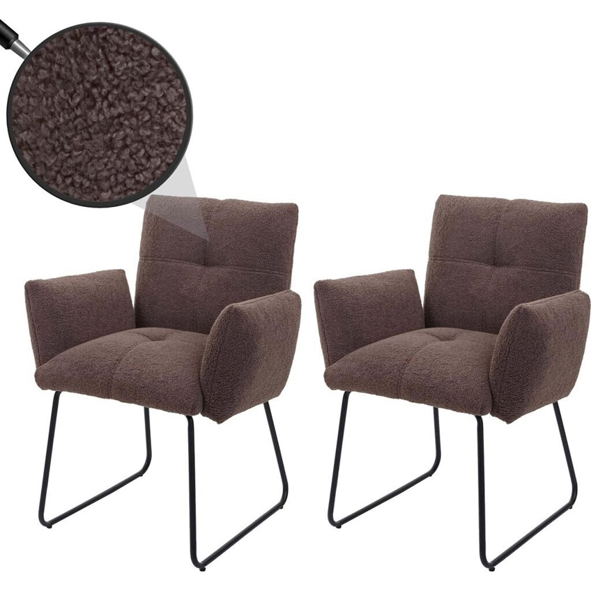 Mendler 6er-Set Esszimmerstühle HWC-K34 | Polsterstuhl mit Armlehne im modernen Bouclé-Stoff | Hochwertige Metall-Konstruktion in Braun