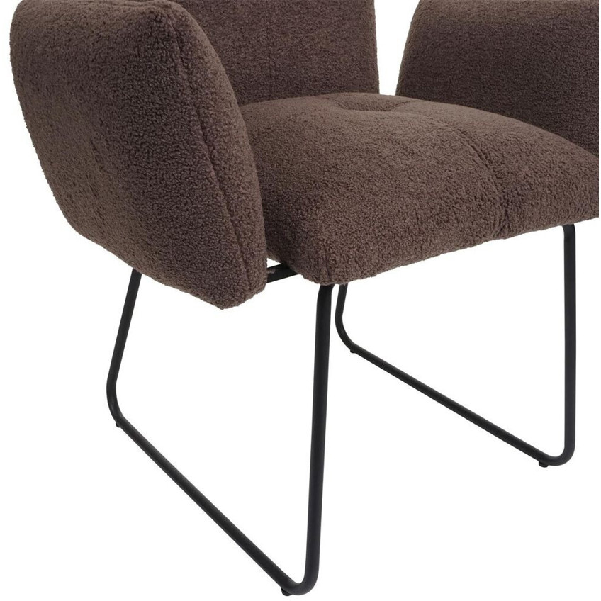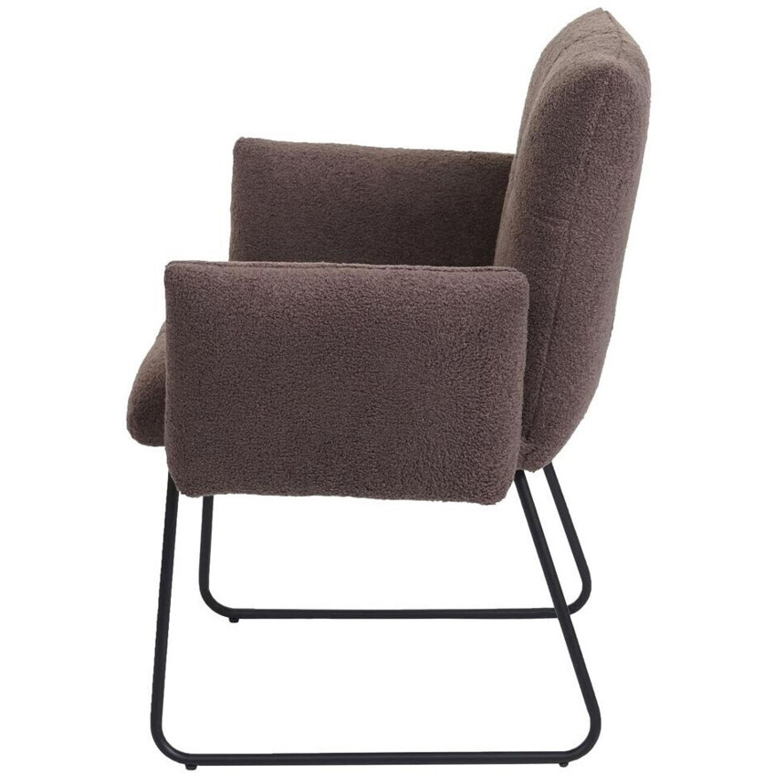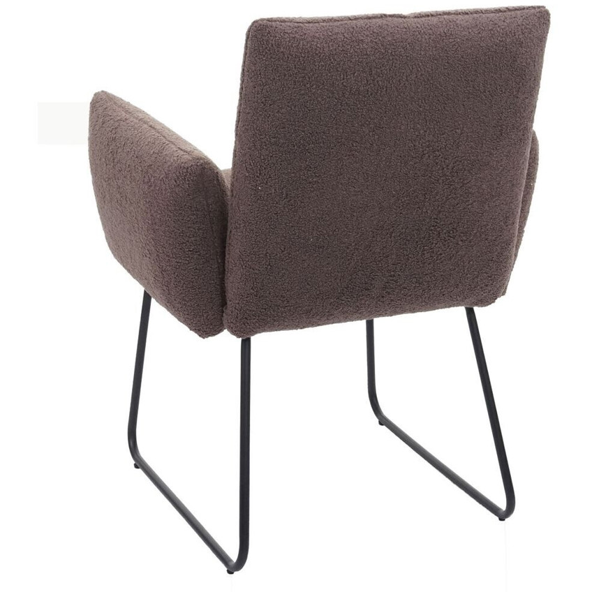 Gefertigt aus hochwertigem Metall, bietet der Stuhl nicht nur eine ansprechende Optik, sondern auch eine beeindruckende max. Belastbarkeit von bis zu 120 kg. Die braune Sitz- und Rückenfläche aus weichem Bouclé-Stoff sorgt für ein angenehmes Sitzgefühl und ergänzt Ihr modernes Interieur perfekt.