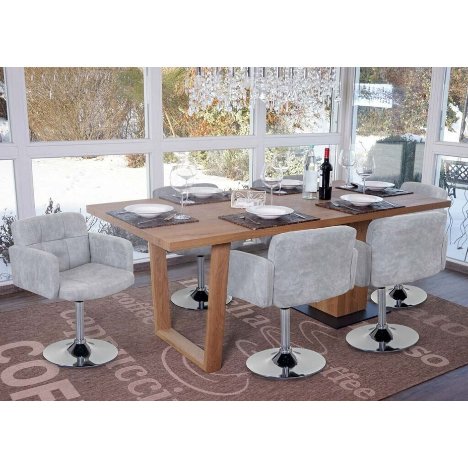 Mendler 6er-Set Esszimmerstühle Houston | Höhenverstellbare Drehstühle | WildKunstleder in Vintage Grau mit Chrom-Gestell