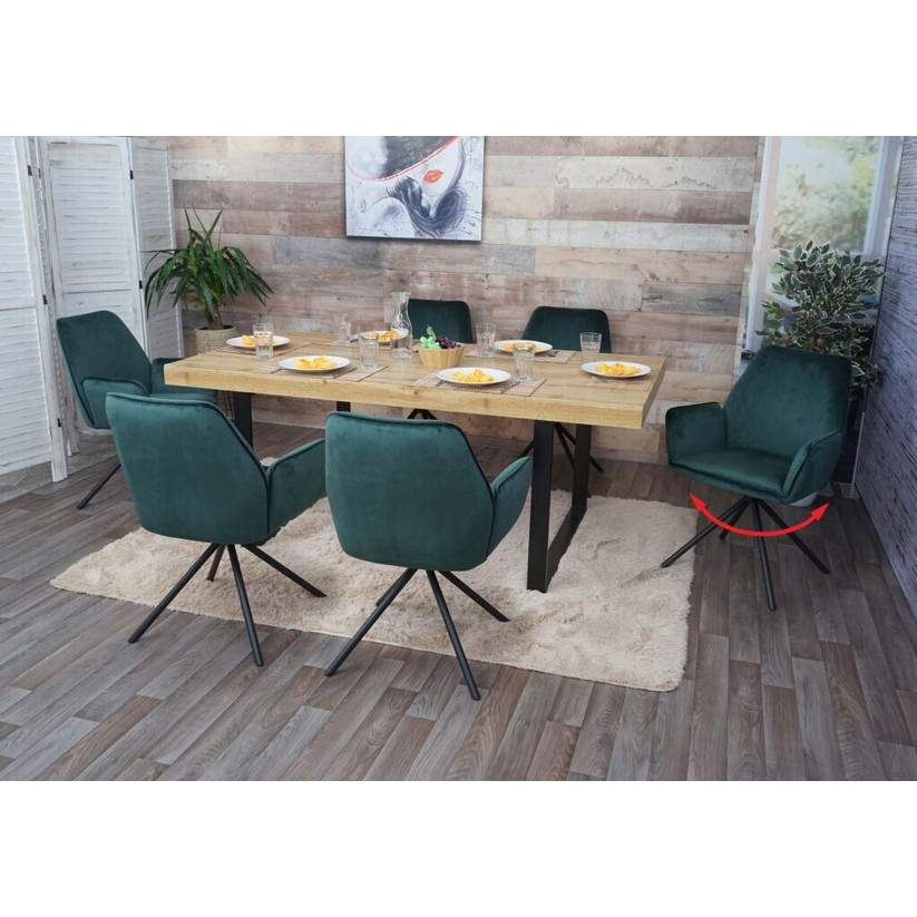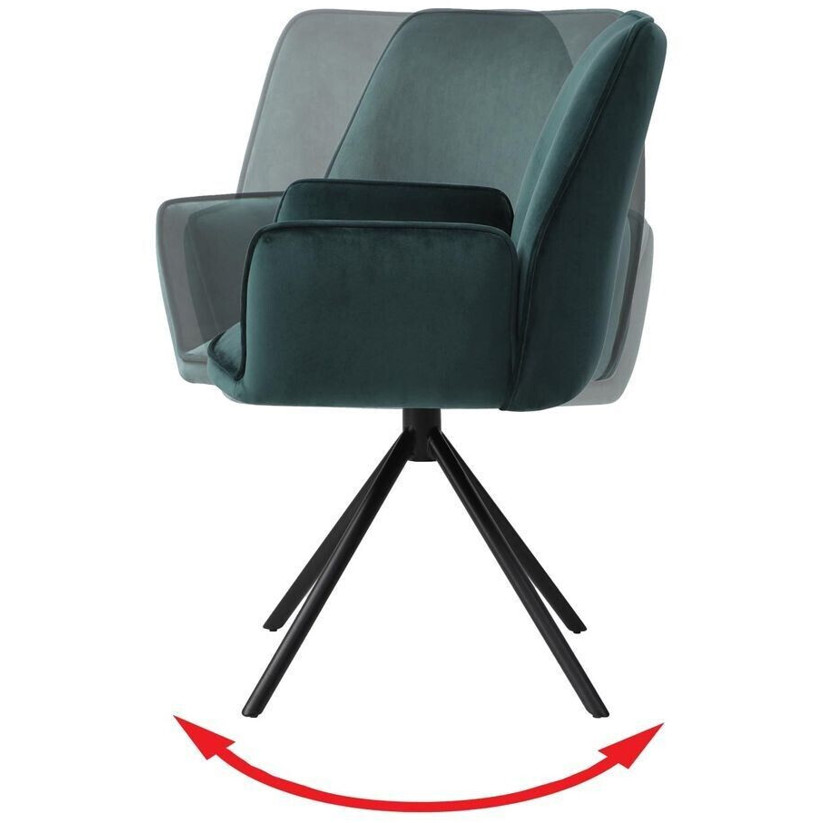 Mendler 6er-Set Esszimmerstühle MCW-G67 | Drehbare Küchenstühle mit Armlehne | Samtgrün mit schwarzen Beinen
