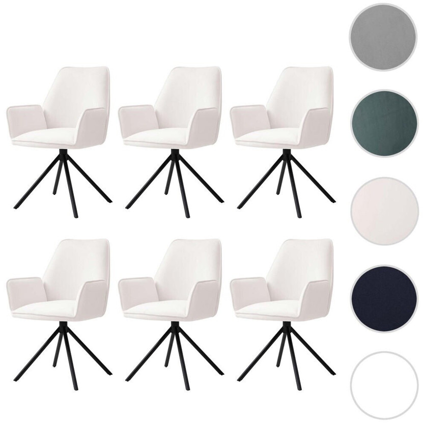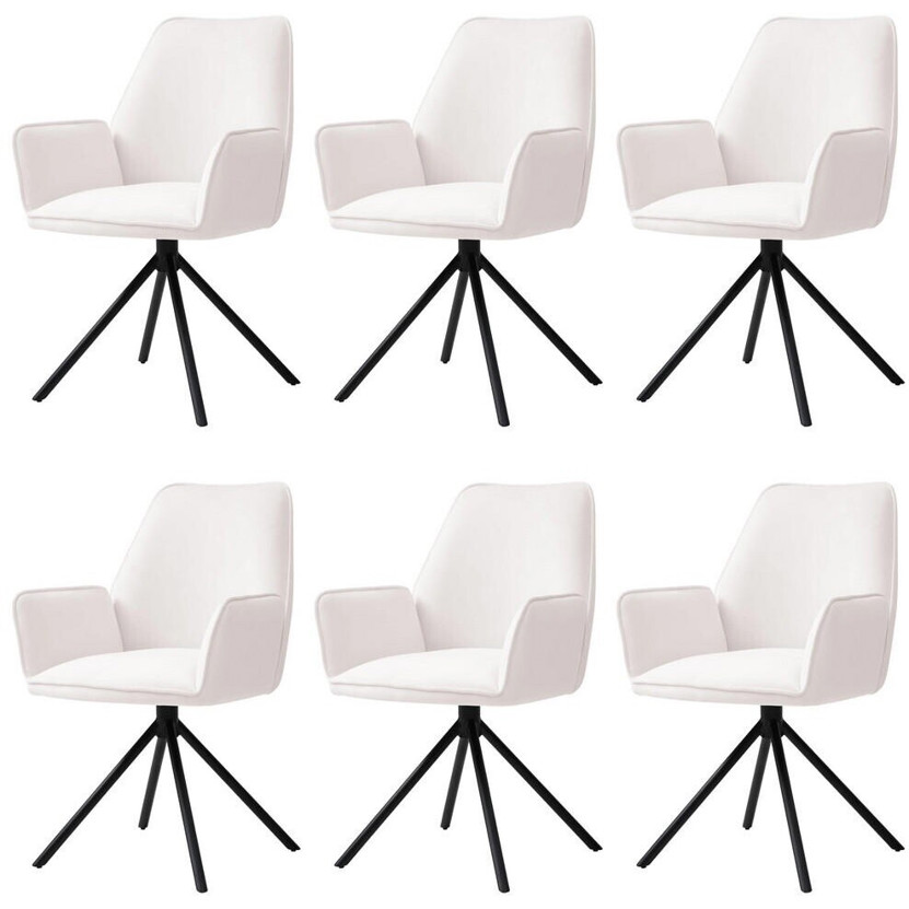 Mendler 6er-Set Esszimmerstühle MCW-G67 | Drehbare Küchenstühle mit Armlehnen | Samt Creme-Beige | Schwarze Beine