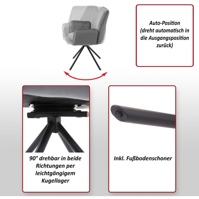 Produktinformationen "Mendler 6er-Set Esszimmerstühle MCW-G67 | Drehbare Küchenstühle mit Armlehnen | Samt Creme-Beige | Schwarze Beine"