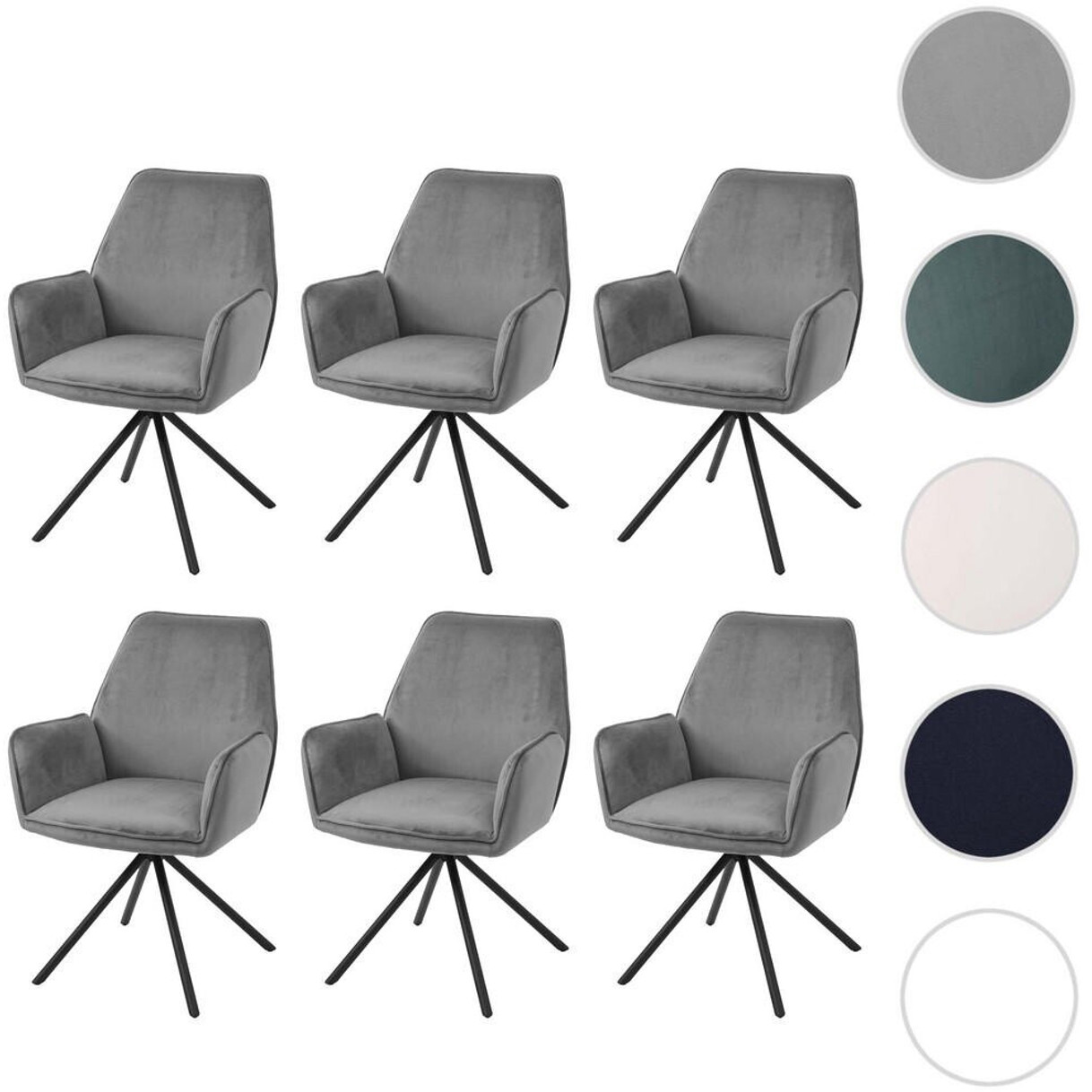Mendler 6er Set Esszimmerstühle MCW-G67 - Drehbare Samt Stühle mit Armlehne - Dunkelgrau mit schwarzen Beinen