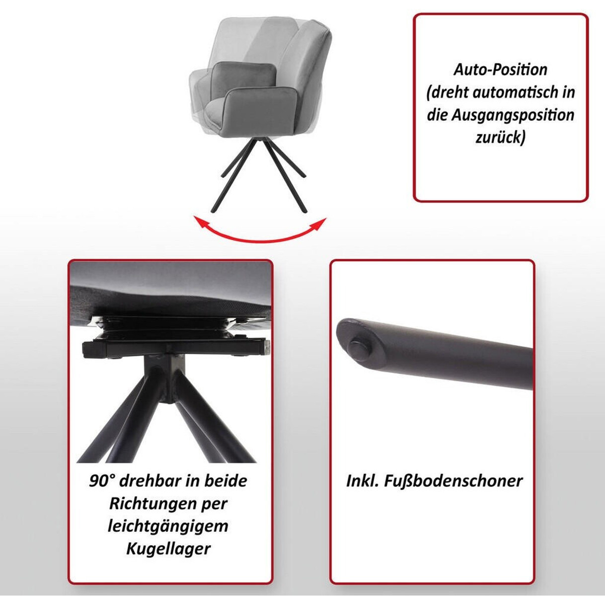 Produktinformationen "Mendler 6er Set Esszimmerstühle MCW-G67 - Drehbare Samt Stühle mit Armlehne - Dunkelgrau mit schwarzen Beinen"