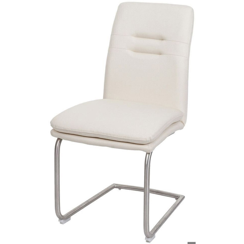 Mendler 6er-Set Esszimmerstühle MCW-H70 | Freischwinger Küchenstühle | Creme-beige Textil mit gebürstetem Edelstahl
