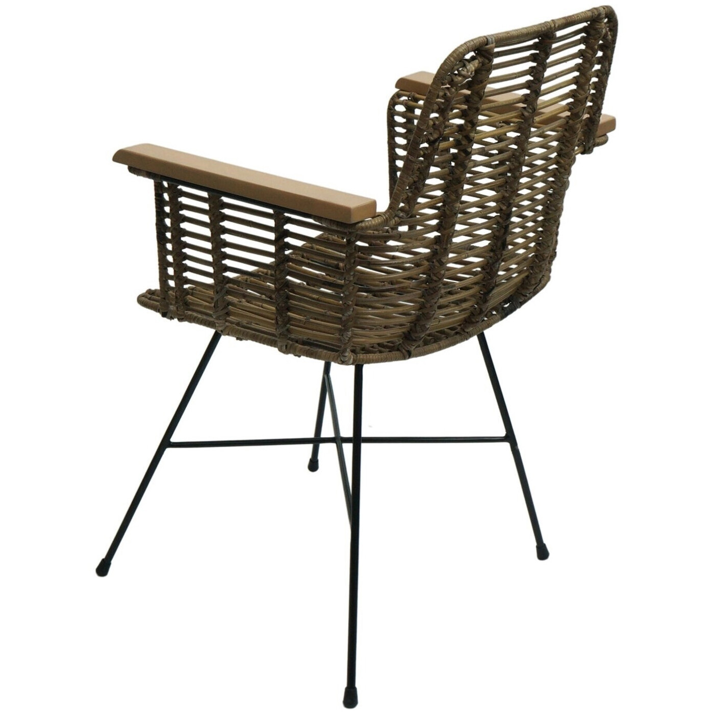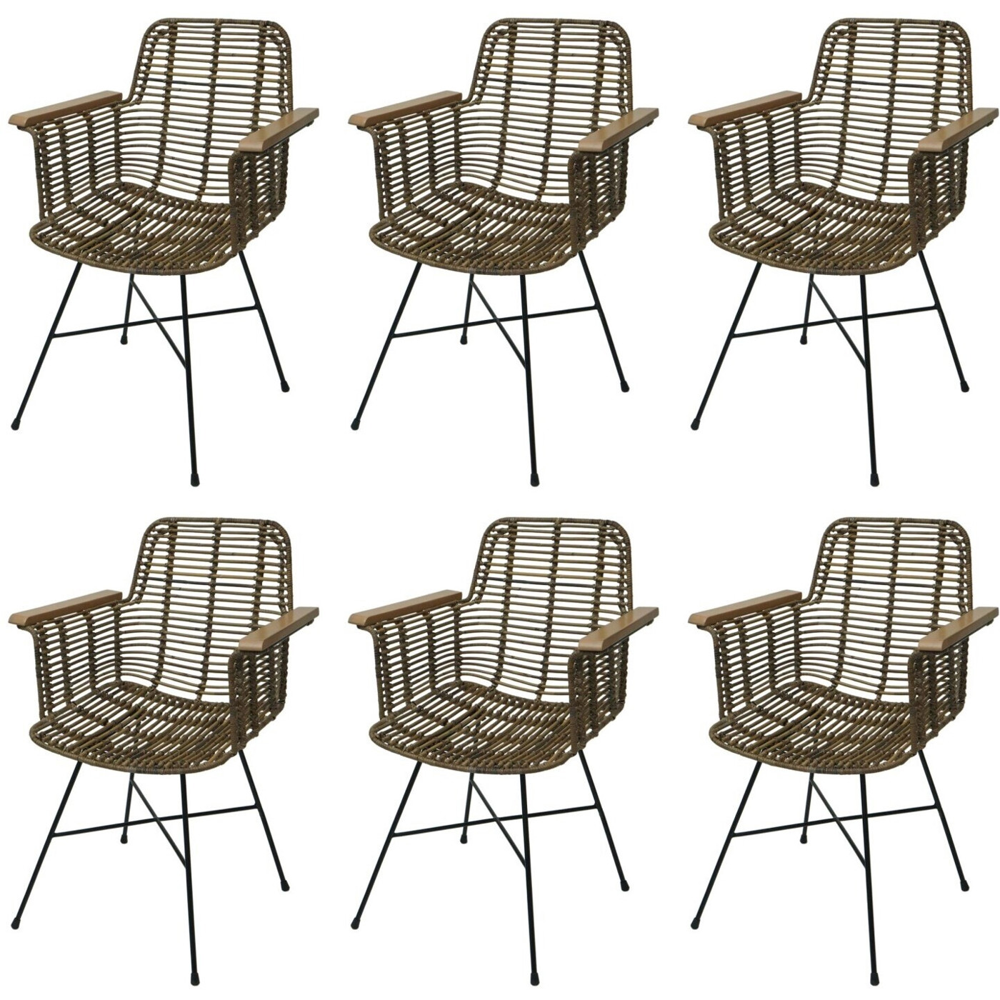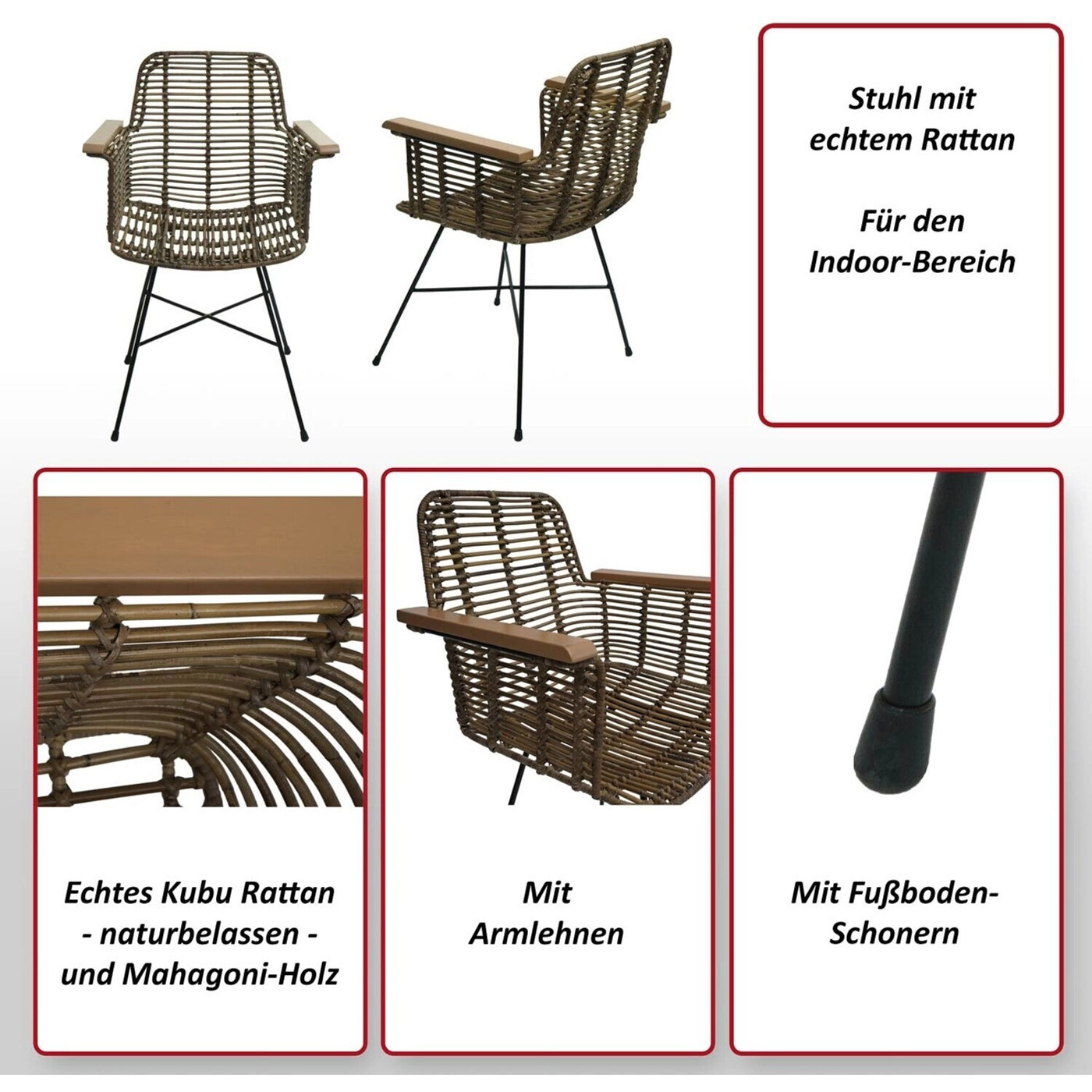 Mendler 6er-Set Esszimmerstühle MCW-M29 - Elegante Küchenstühle mit Armlehnen aus Kubu Rattan, Holz & Metall