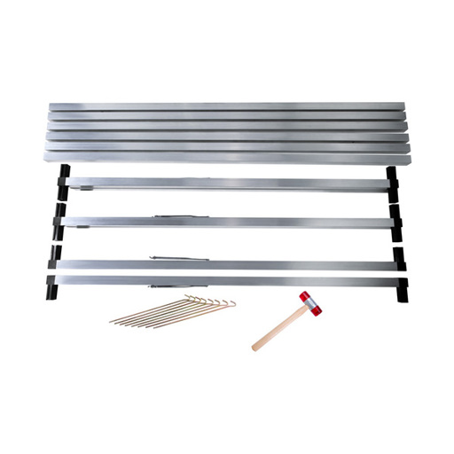 Die einfache Montage vor Ort wird durch die teilkonfektionierten Aluminium-Vierkantrohre erleichtert, die zusammen mit den benötigten Kunststoff-Verbindern und Scharnieren geliefert werden. Nach der Montage können Sie das Display bei Bedarf mit den im Lieferumfang enthaltenen 300 mm langen Erdnägeln im Boden verankern, um es besonders windfest zu machen. Hinweis: Der A-Banneraufsteller ist für einen Einsatz bei Windstärken bis ca. 4 geeignet, abhängig von der Bodenbeschaffenheit.