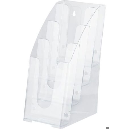 Die kompakten Maße von 112 mm in der Breite, 100 mm in der Tiefe und 255 mm in der Höhe machen diesen Prospektständer zu einem platzsparenden Highlight in jeder Umgebung. Dank des leichten Gewichts von nur 0,31 kg lässt er sich mühelos transportieren und neu positionieren. Die transparenten Prospektfächer und der robuste Kunststoffrahmen sorgen nicht nur für Stabilität, sondern auch für eine ansprechende Optik, die sich harmonisch in jede Umgebung einfügt.