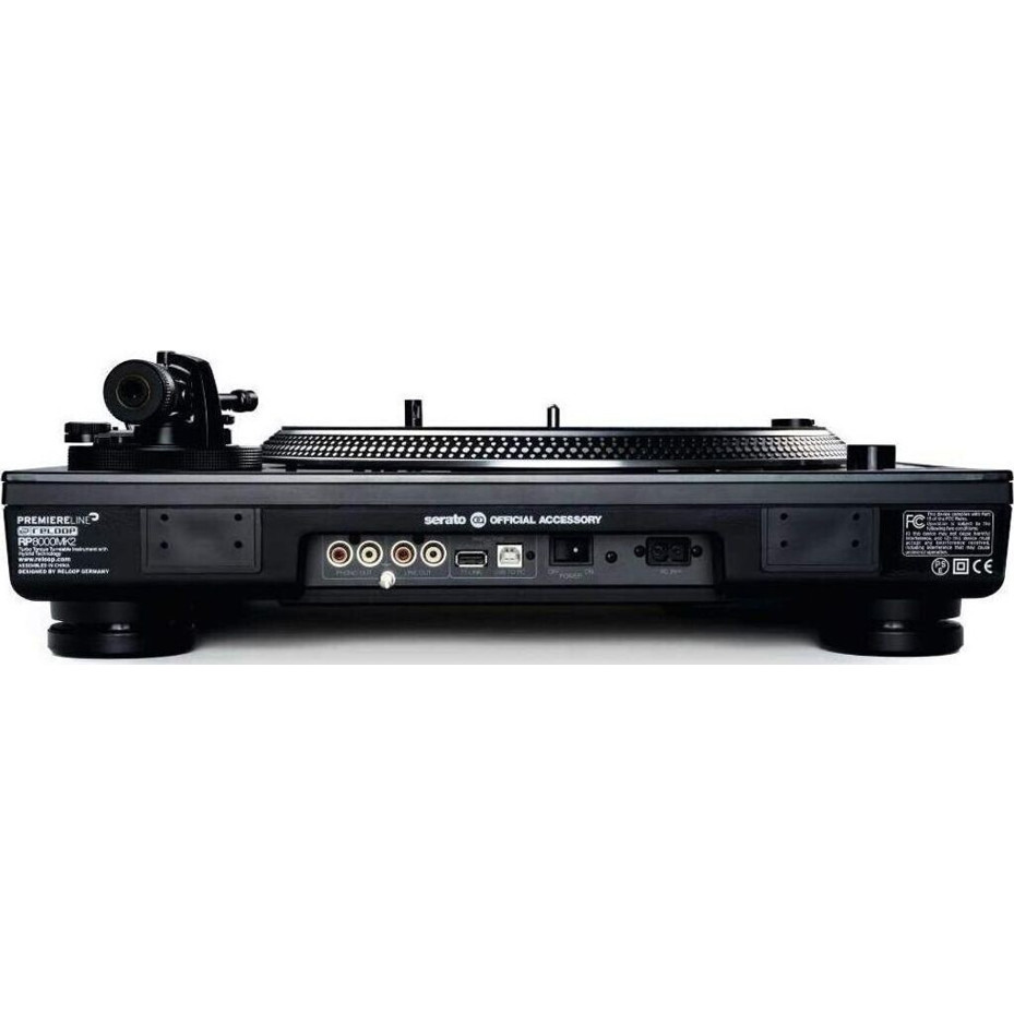 Die Anschlüsse umfassen USB-B, Line Out, Masse (GND) und Phono-Ausgang, um eine einfache Integration in Ihr bestehendes Setup zu gewährleisten. Mit den kompakten Abmessungen von 45.8 x 35.4 x 14.46 cm findet der RP-8000 MK2 in jedem DJ-Set seinen Platz.
